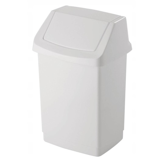 Kosz na śmieci CURVER Click-It 50 l w kolorze białym to praktyczne rozwiązanie do kuchni, łazienki i biura. Wykonany z wytrzymałego tworzywa sztucznego, łatwo się czyści i zachowuje estetyczny wygląd na co dzień. Ręcznie otwierana, obrotowa pokrywa umożliwia szybkie wyrzucanie odpadów jedną ręką. Konstrukcja wieka pozostawia zawartość kosza zakrytą, co pomaga ograniczać rozchodzenie się zapachów i dba o dyskrecję. Smukła forma ułatwia ustawienie przy ścianie lub w narożniku. Pojemność 50 l sprawdzi się w pomieszczeniach o większym natężeniu użytkowania. Neutralna kolorystyka dobrze komponuje się z nowoczesnymi wnętrzami.