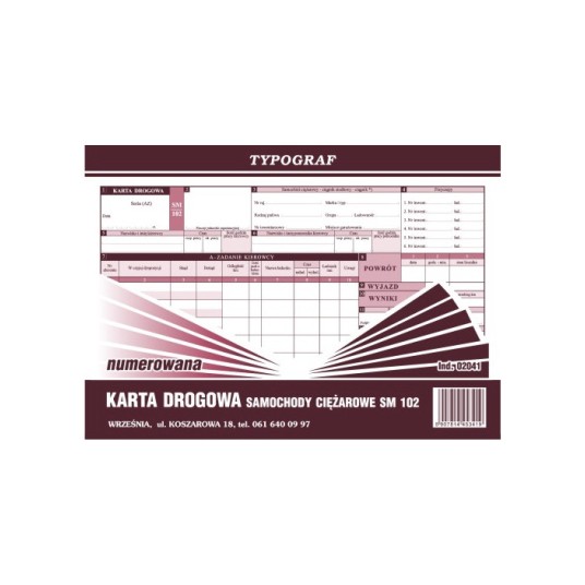 Druk- Karta drogowa Sm-102 TYPOGRAF numerowana