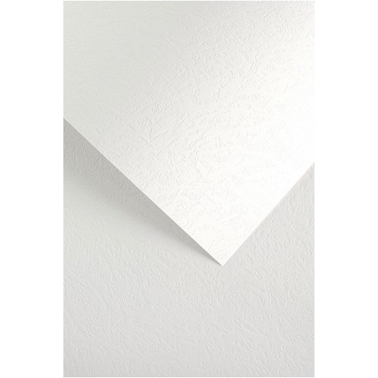 Zestaw 20 arkuszy ozdobnego kartonu o fakturze skóry i w kolorze białym. Przeznaczony do przygotowania insertów do kart okolicznościowych, dyplomów, zaproszeń, wizytówek, menu i innych eleganckich korespondencji.