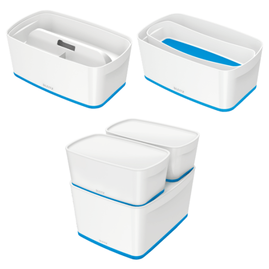 Pojemnik pełniący funkcję organizera, z system modułowego ustawiania, dopasowaniem do małych i dużych pojemników Leitz MyBox, sprawi że utrzymasz porządek w eleganckim stylu czy to w domu czy biurze. Jest również dopuszczony do kontaktu z żywnością.