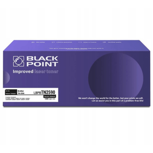 Toner Black Point LBPBTN2590 to wysokiej klasy zamiennik przeznaczony do nowej generacji drukarek Brother korzystających z wkładu TN-2590. Zapewnia czyste, profesjonalne wydruki oraz pełną zgodność z urządzeniami, w których jest stosowany.