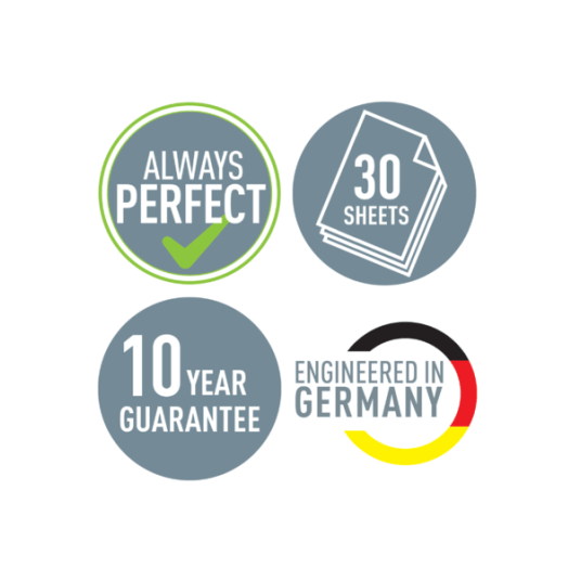 - Dziurkuje do 3 mm/30 kartek (papier 80 gsm)