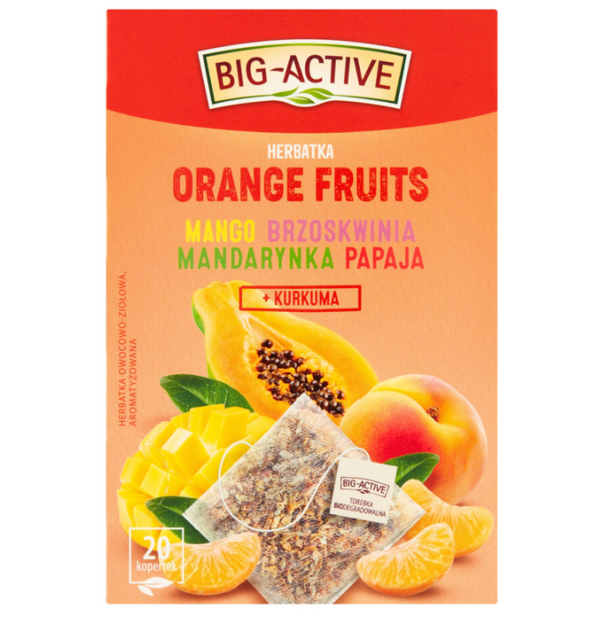 Ta owocowo-ziołowa mieszanka BIG-ACTIVE SWEET DREAM to energetyczne połączenie egzotycznych owoców i subtelnych dodatków roślinnych. Słodycz mango, brzoskwini i papai komponuje się z nutą mandarynki, nadając naparowi lekkiego, południowego charakteru.