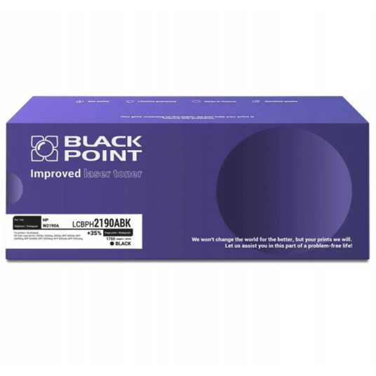 Toner Black Point HP 219A (LCBPH2190ABK) to wysokiej jakości zamiennik oryginalnego wkładu HP W2190A, przeznaczony do nowoczesnych drukarek laserowych z serii HP Color LaserJet Pro. Zapewnia wyraźny, głęboki czarny kolor, idealny zarówno do codziennych wydruków biurowych, jak i dokumentów wymagających wysokiej czytelności.