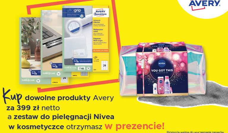 Tylko teraz Avery + Nivea GRATIS. Promocja limitowana! Kup Avery i zgarnij kosmetyczkę Nivea.