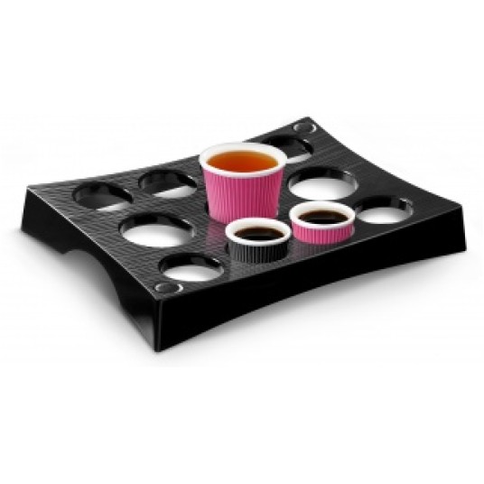 Pozwala w komfortowy i bezpieczny sposób dostarczyć do sali konferencyjnej kubki z gorącymii napojami lub wrzątkiem bez obawy o rozlanie, poplamienie czy poparzenie. Mieści kubki w dwóch wielkościach. Przydatna zarówno do przenoszenia jak i przechowywania kubeczków od kompletu. Wymiary: 3,30 x 2,50 x wys. 4,6 cm.