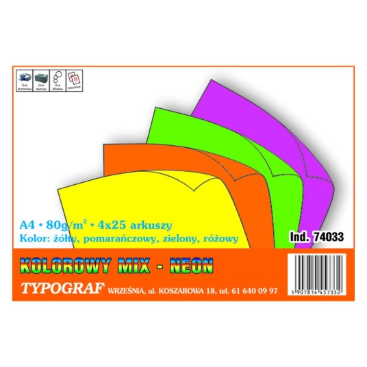 Papier kolor MIX TYPOGRAF A4 80g [100] neon