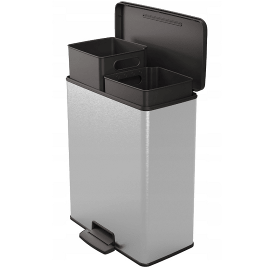 ✅ Oszczędność miejsca – jeden kosz zamiast dwóch osobnych pojemników