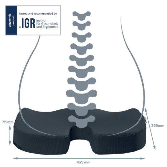 Skłania do przyjmowania prawidłowej postawy, poprawia krążenie i zmniejsza nacisk na kręgosłup, minimalizując kontakt między kością ogonową a krzesłem