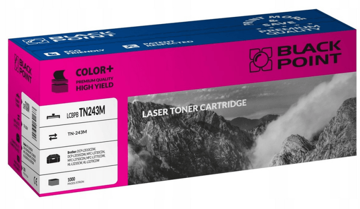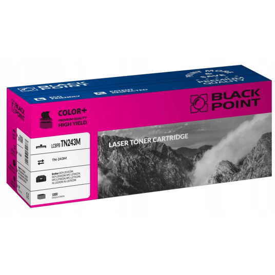 Toner laserowy Black Point LCBPBTN243M. Zastępuje Brother TN-243M. Kolor: magenta. Wydajność: 1000 str. (ISO 19752). Kompatybilny z Brother: DCP-L3510CDW, DCP-L3550CDW, MFC-L3730CDN, MFC-L3770CDW, HL-L3210CW, HL-L3270CDW.