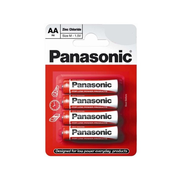 Cynkowo - węglowe baterie Panasonic zostały zaprojektowane z myślą o produktach nie wymagających dużego poboru energii.Doskonale nadają się do użytku w takich urządzeniach jak zegary, radia.