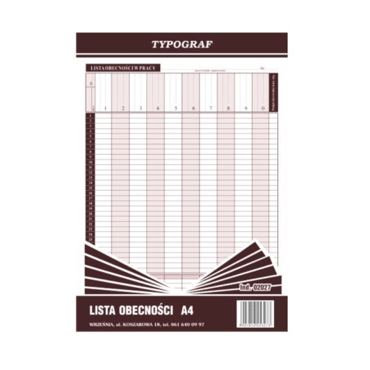 Druk- Lista obecności A4 TYPOGRAF