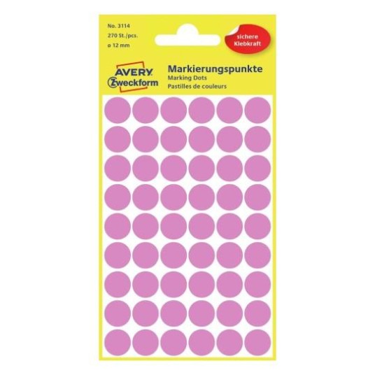 KÓŁKA AVERY 12mm TRWAŁE (270 SZTUK) (RÓŻOWE)