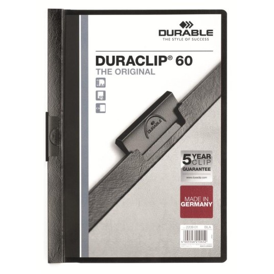 Skoroszyt zaciskowy Nr. 1 na świecie! Oryginał wytwarzany w Niemczech. Skoroszyt zaciskowy wykonany z PVC, z przezroczystą przednią okładką, do 1-60 kartek.