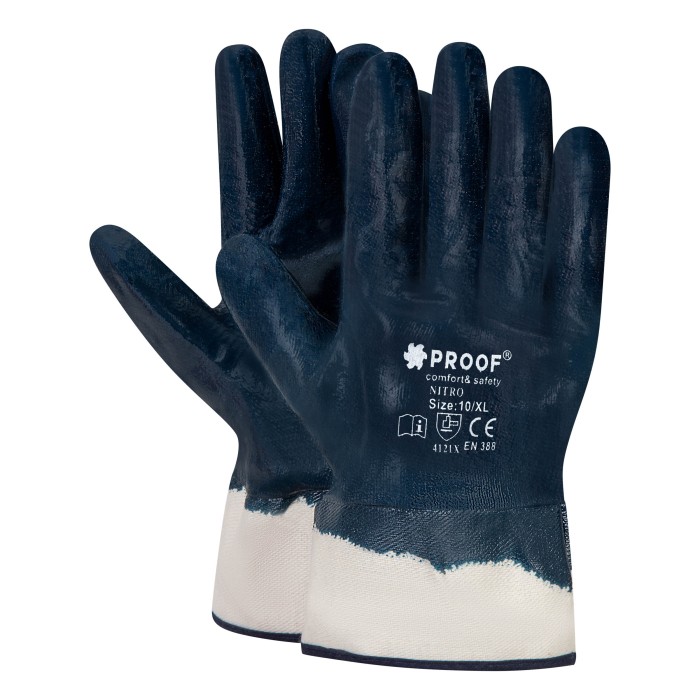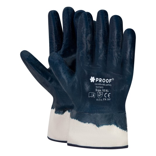 Solidne rękawice nitrylowe, które są wodoodporne oraz olejoodporne zakończone mankietem, który chroni przedramię i ułatwia ich zakładanie oraz zdejmowanie.. Mieszanka nitrylowa, która została zastosowana w tej rękawicy ma optymalne stężenie, a utwardzacze zwiększają wytrzymałość powłoki nitrylowej. Wyposażone we wkładkę pochłaniającą pot, co zwiększa komfort podczas użytkowania. Ten model rękawic roboczych to pewna ochrona z każdej stroni dłoni przez całkowite oblanie wytrzymałem nitrylem.
