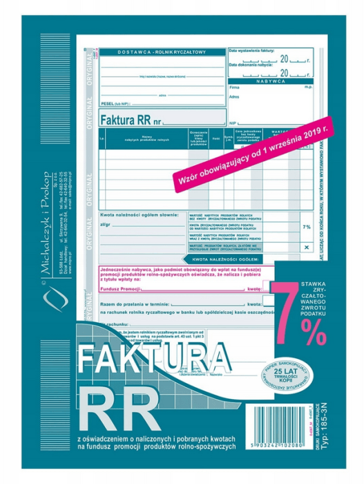 ✅ Przeznaczony do faktur VAT RR i innych dokumentów zgodnych z przepisami o podatku od towarów i usług