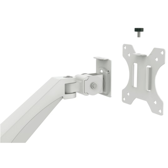 Specyfikacja • marka: LEITZ • linia: ERGO • rodzaj: ramię na 2 monitory • kolor: jasnoszary • wymiary: 1120 x 110 x 600 mm • waga: 5,5 kg • regulacja wysokości monitorów: 185–435 mm • obrót monitora lewo / prawo: +90° / -90° • obrót monitora w poziomie i pionie: do 180° • pochylenie ekranu: +55° / -55° • typ ramion: 2 ramiona ze sprężyną gazową • kompatybilność monitorów: 17"–32" • maksymalne obciążenie jednego monitora: 9 kg • standard VESA: 75 x 75 mm, 100 x 100 mm • sposób montażu: zacisk typu C lub otwór przelotowy • zakres grubości biurka: 10–80 mm • dodatkowe elementy: system zarządzania kablami, narzędzia do montażu i regulacji • certyfikaty: IGR, TÜV