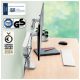 Ramię na 2 monitory LEITZ ERGO jasnoszare to praktyczne rozwiązanie dla osób, które chcą poprawić ergonomię stanowiska pracy i lepiej wykorzystać przestrzeń na biurku. Umożliwia ustawienie dwóch ekranów na odpowiedniej wysokości, co pomaga utrzymać prawidłową postawę oraz zmniejsza napięcie szyi i ramion podczas wielogodzinnej pracy. Niezależna regulacja obu monitorów pozwala wygodnie dopasować ich położenie do własnych preferencji oraz specyfiki wykonywanych zadań. Dzięki sprężynom gazowym zmiana wysokości, kąta pochylenia i ustawienia ekranów jest płynna i wygodna nawet jedną ręką. Konstrukcja unosi monitory ponad blat, co zwalnia cenne miejsce robocze i ułatwia utrzymanie porządku. To funkcjonalny wybór do biura i home office dla użytkowników, którzy pracują na dwóch monitorach i oczekują wygody, stabilności oraz nowoczesnej organizacji stanowiska.